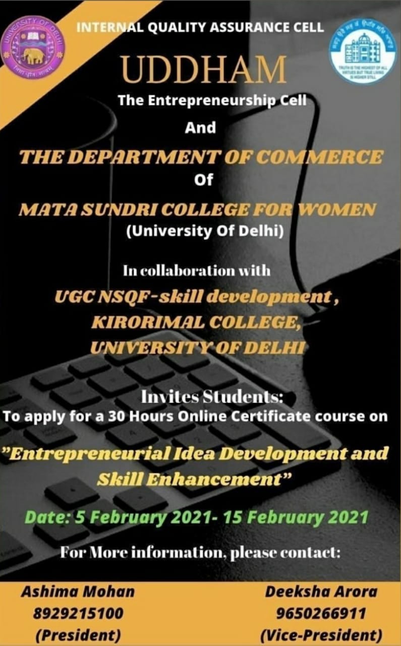 Invictus, The Commerce Society of Mata Sundri College for Women organised an Inter-departmental