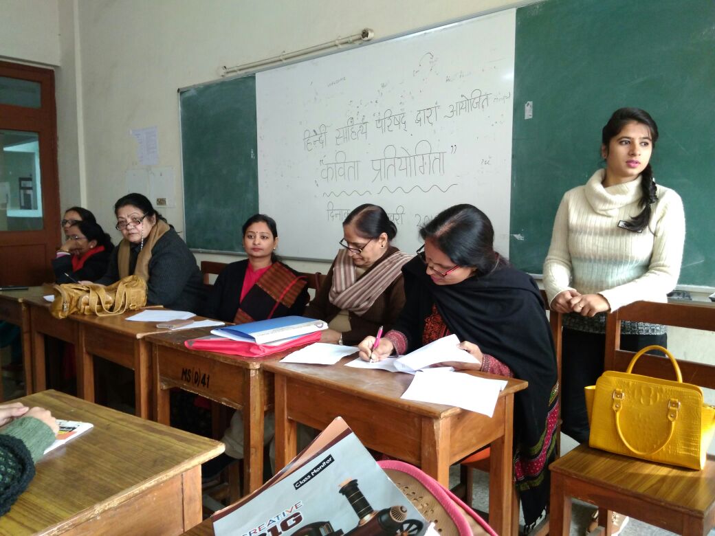 “Hindi Sahitya Parishad” organises numerous academic and Co-curricular activities including inter college and inter departmental activities comprising of debate, poetry, declamation, quiz, special lectures, seminars, workshops and talks by eminent speakers on different topics. The aim of organizing these events is to provide students a platform to express their views, to show their hidden talent and to groom their overall personality.