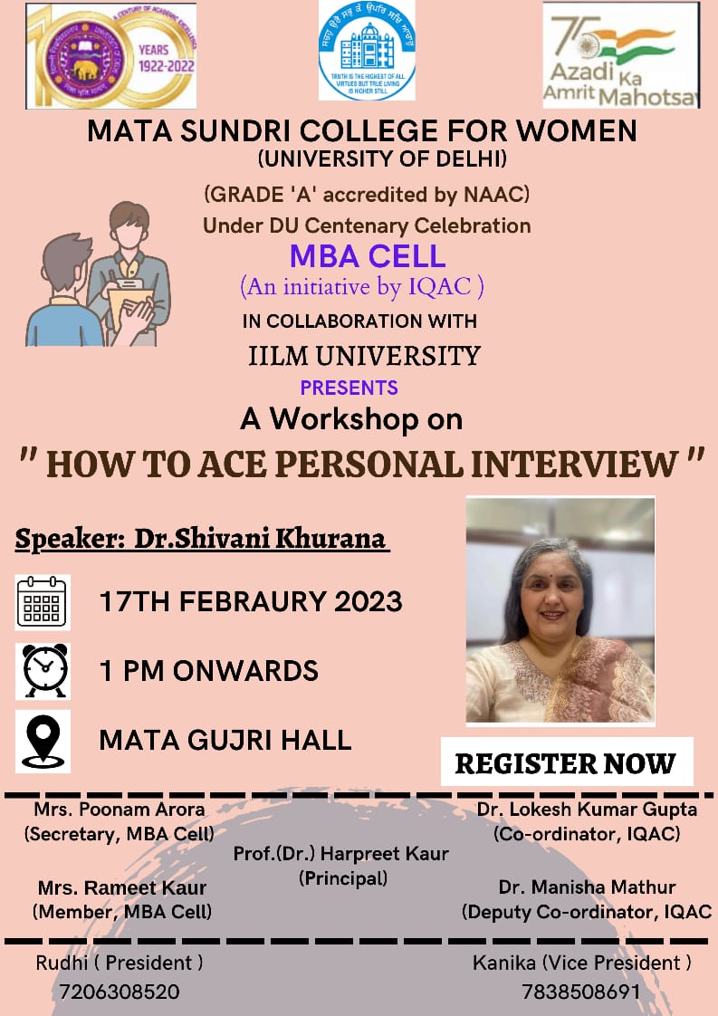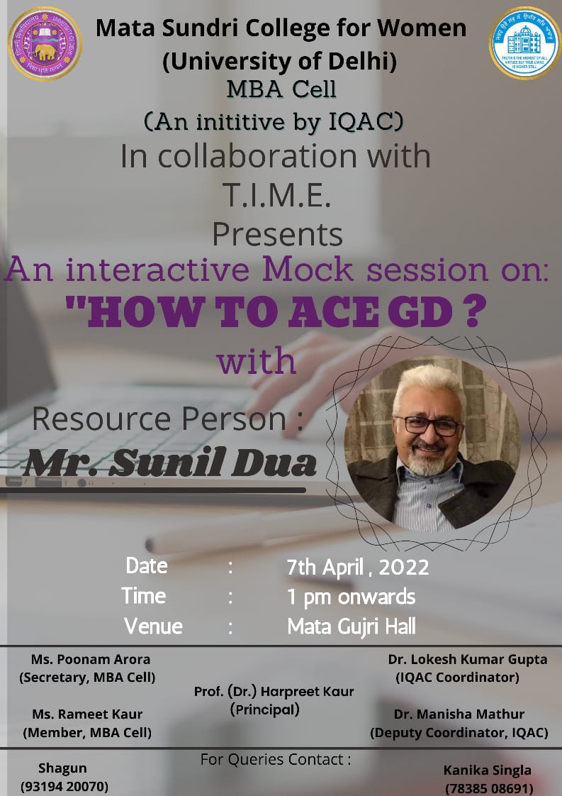 MBA Cell of Mata Sundri College for Women (An initiative by IQAC) in