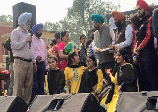 - On 29 January Simran Kaur participated in light music (folk song) Compitition and got 1st Prize in Saarang Competition . Manpreet Kaur VIth Sem got 3rd prize in Classical Mmusic.