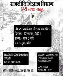 The topic of the session was “Realism and Neorealism”. It was an interactive session in which students participated enthusiastically. They presented their learnings and views on the basic assumption of realist theories and their importance in explaining international relation. Subsequently, teacher coordinator also discussed her views and gave comparative analysis of both theories.
