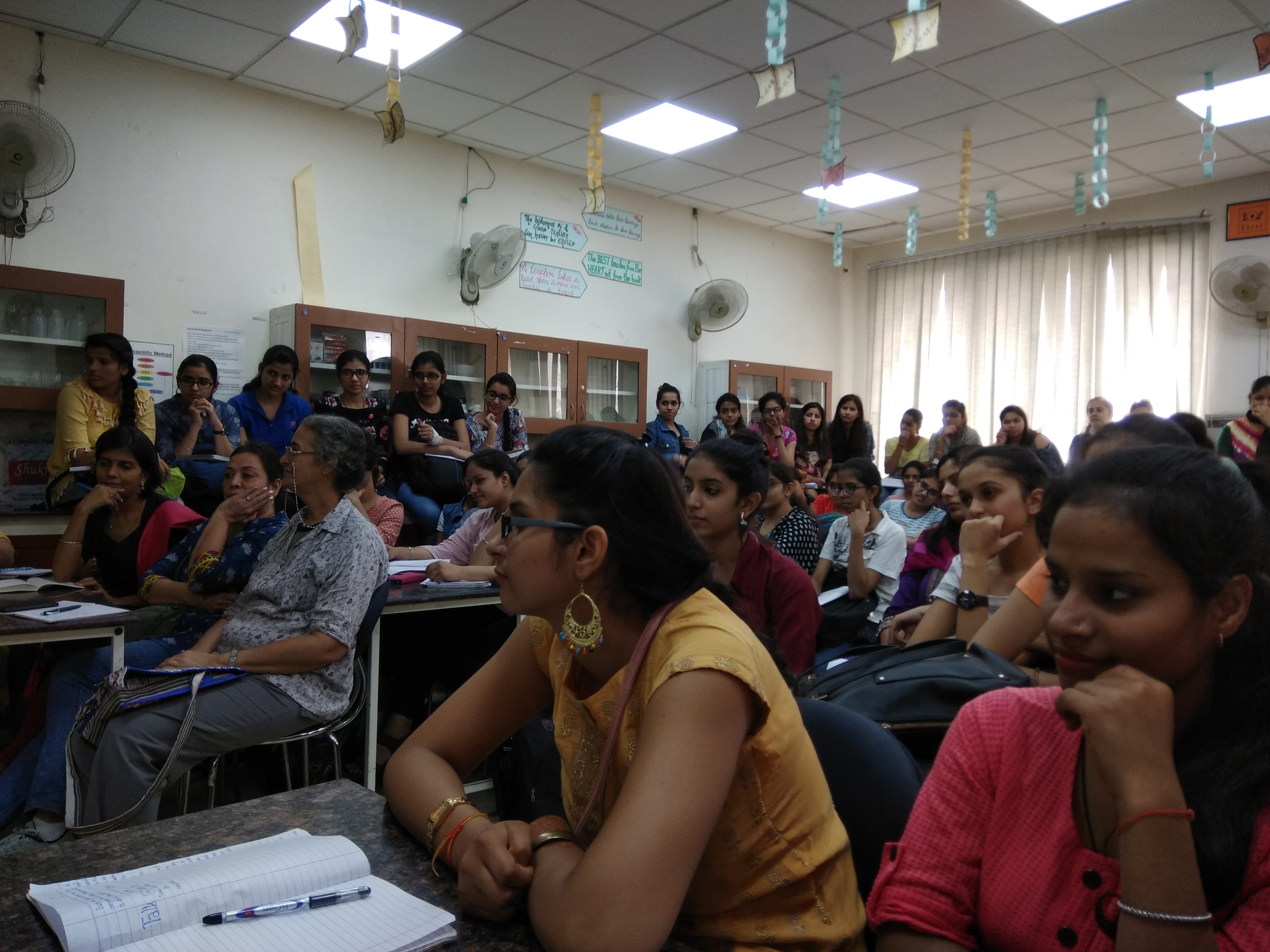 Contributing to this alliance, school principal and teachers of both the schools were invited to attend the lectures and workshops organised in the Department from time-to-time. The faculty from concerned schools attended sessions by Prof Harjeet Kaur Bhatia and Jodogyan organization. Suggestive themes for workshops in schools were also sought from school teachers .Based on their suggestions, a play on the theme of ‘cleanliness’ was presented in both the schools by B.El.Ed. students.