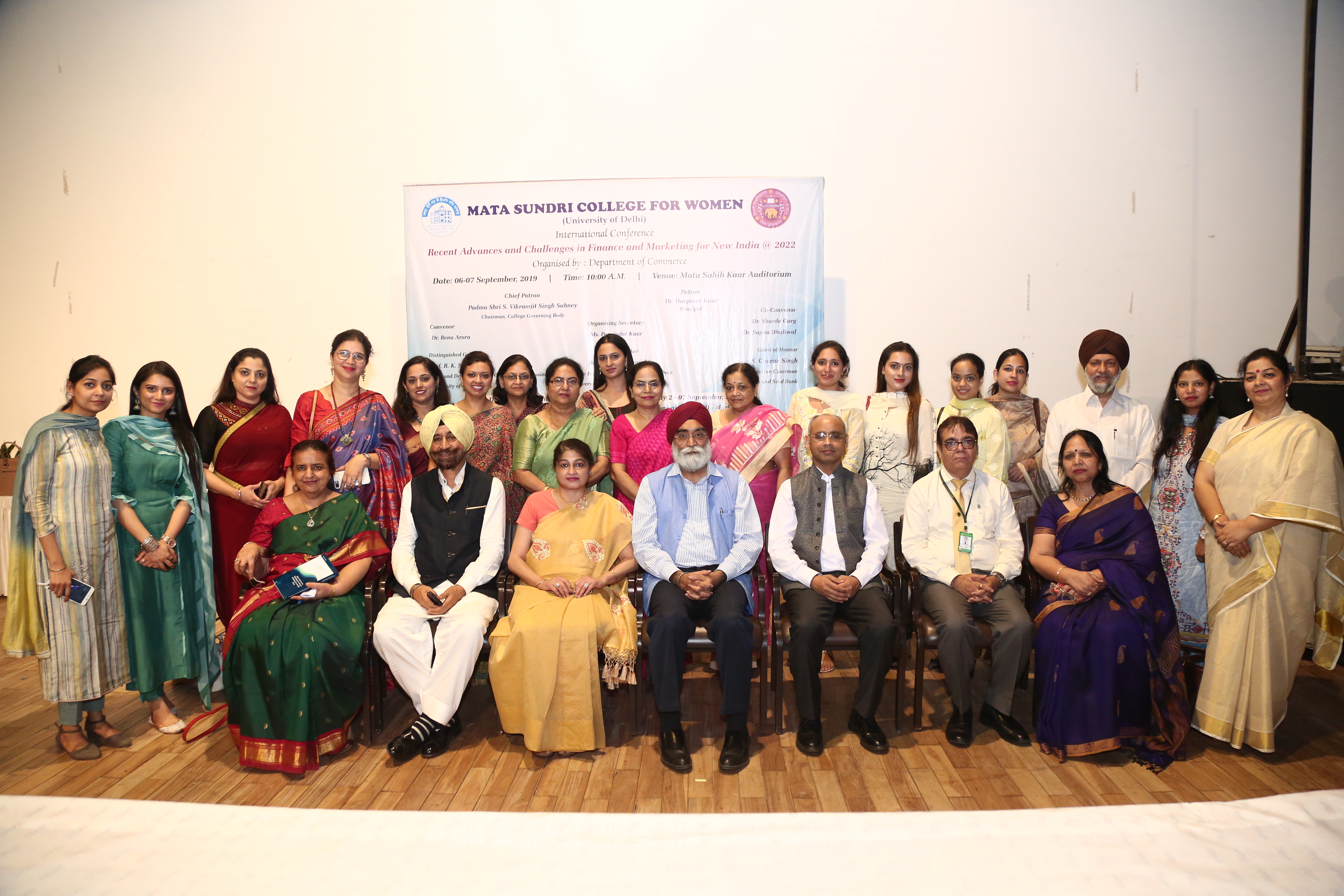 The Department of Commerce of Mata Sundri College for Women conducted an international Conference on “Recent Advances and Challenges in Finance and Marketing for New India @2022” on 06 - 07 September, 2019 at college campus with the objective of sensitizing delegates to various aspects of business challenges. The main purpose of the conference was to create a common platform, where national and international delegates came together and engaged in participative discussion on various emerging business challenges. The conference was a huge success by the collective efforts of Prof. (Dr.) Harpreet Kaur, Principal, Convenor, Dr. Renu Arora, Co-Convenors, Dr. Sharda Garg and Dr. Sapna Dhaliwal and Organising Secretary, Ms. Parvinder Kaur and all the faculty members of Commerce Department.