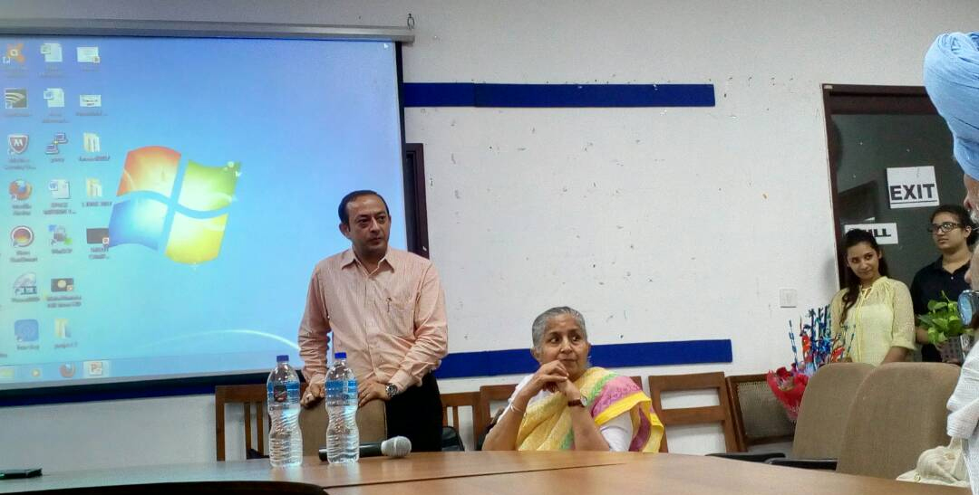A lecture was delivered by chief guest Mr. Rajneesh Sareen, Programme Director, Sustainable buildings and Habitat Programme, Centre for Science and Environment, Delhi. The main objective of the lecture was to create awareness among students so that they can apply in the college as well as their homes as a part of green campus initiative. Mr. Rajneesh focussed about the sustainable development, carbon footprint, green campus programmes and solution to control the indoor air pollution by using some pollutant absorbing plants like cactus, aloe vera etc. He emphasised use of LEDs and solar panel for energy conservation in the college campus. He also suggested the annual energy audit to check the energy conservation status of the college annually. For the recharge of groundwater he discussed about water harvesting techniques like roof top water harvesting etc